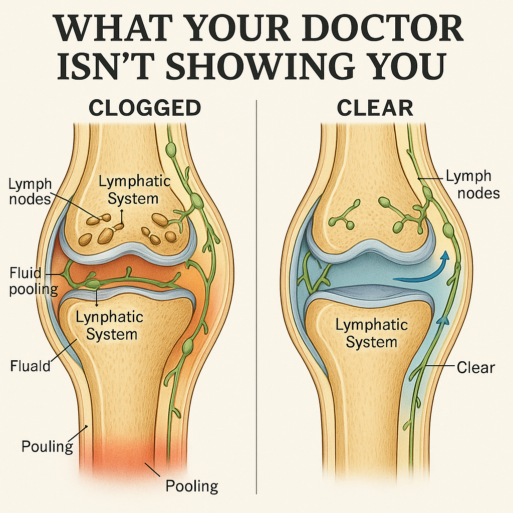 Your knees contain a secret drainage network that medical school barely teaches. 23 lymph nodes. 47 drainage vessels. 1 major problem: They're probably clogged. Dr. Elisabeth Brenner, lymphatic specialist: "I see patients who've carried 5+ years of trapped fluid. They think it's fat or age. It's neither." The lymphatic system has no heart to pump it. It relies on: